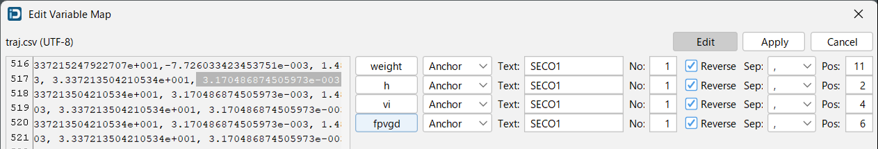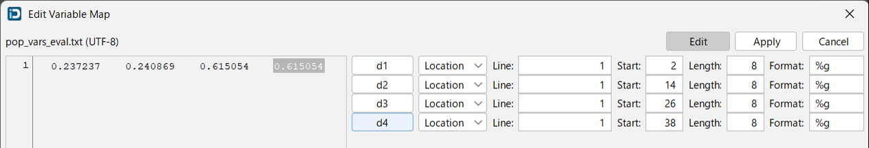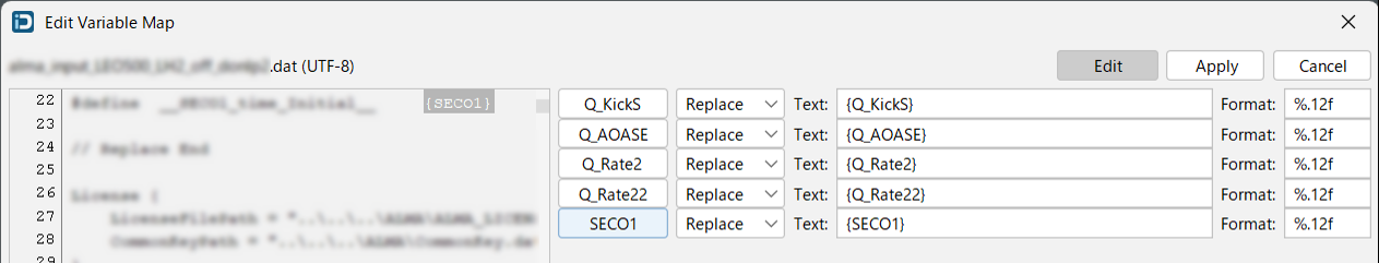 入力変数を Input File にマッピングすることで、Design Varialbe の値をファイルに反映します。