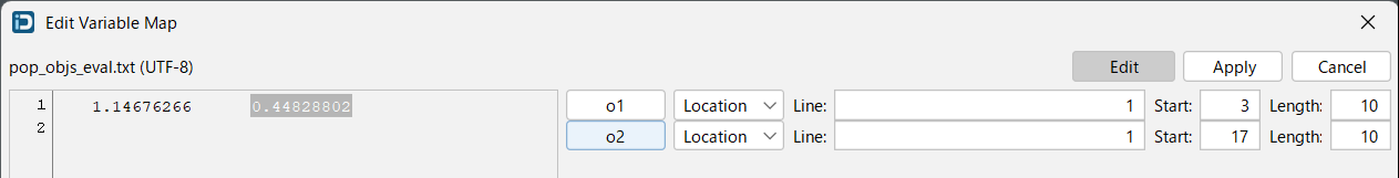 出力変数を Output File にマッピングすることで、ファイルから Objective や Constraint の値を取得します。